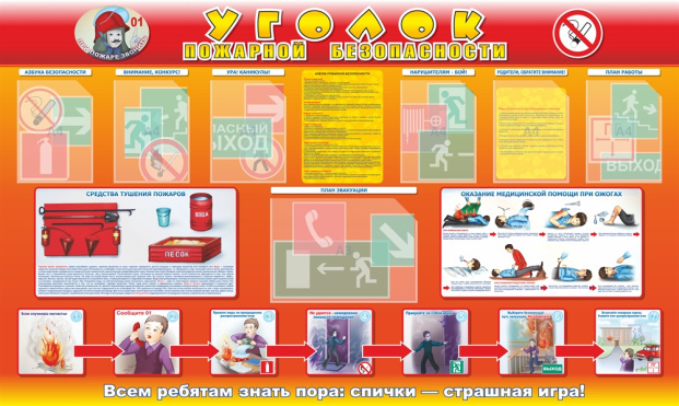 Табличка «Уголок пожарной безопасности», 200х120 см, 7 карманов