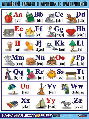 Таблица демонстрационная "Английский алфавит в картинках" (с транскрипцией) (винил 70х100)