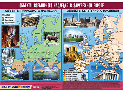 Таблица демонстрационная "Объекты всемирного наследия в Зарубежной Европе" (винил 100х140)
