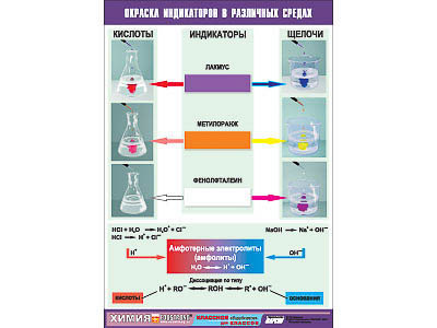 Таблица демонстрационная "Окраска индикаторов в различных средах" (винил 70x100)