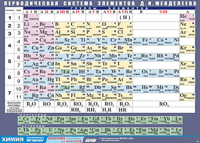 Таблица демонстрационная "Периодическая система элементов Д. И. Менделеева" (винил 70х100)