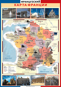 Таблица КАРТА ФРАНЦИИ с достопримечательностями ПАРИЖА 700*1000 винил