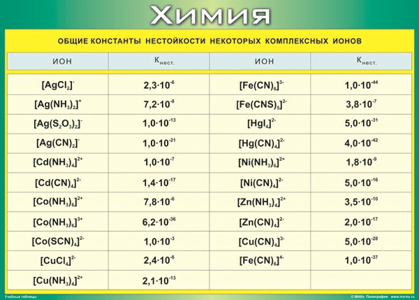 Таблица Общие константы нестойкости некоторых комплексных ионов 700*1000 винил