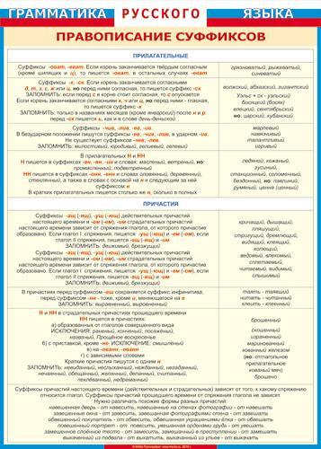 Таблица Правописание суффиксов (прилагательные, причастия) винил 700х1000