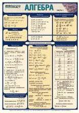 Таблица представляет в сжатом виде основные алгебраические формулы и типовые уравнения. Предназначается всем тем, кто хочет иметь под рукой удобный математический справочник. Таблица состоит из двух частей. Особенно полезна для школьников и студентов.
