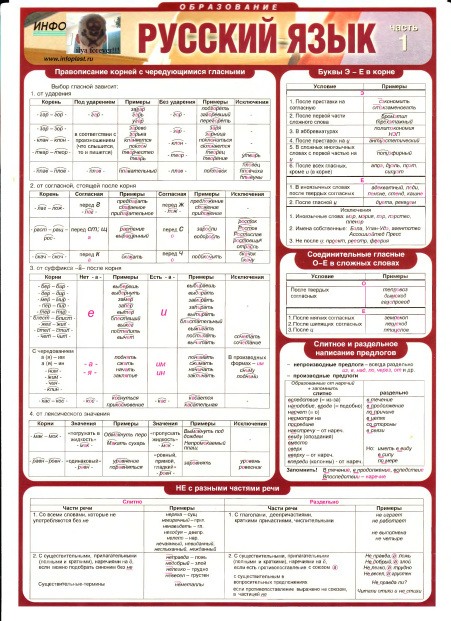 Таблица раздаточная Русский язык Часть 1