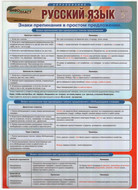 Таблица раздаточная Русский язык Часть 5