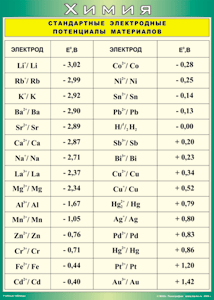 Таблица Стандартные электродные потенциалы материалов 700*1000 винил