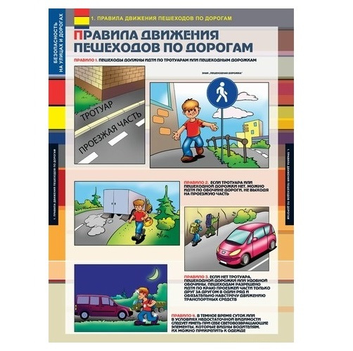 Учебный альбом из 12 листов.Правила движения пешеходов по дорогам. Дороги, на которых движение пешеходов запрещено. Пересечение дороги по пешеходному переходу. Пересечение дороги без пешеходного перехода. Правила пользования нерегулируемым пешеходным переходом. Правила ожидания общественного транспорта. Переход дороги в местах остановки общественного транспорта. Правила пользованиея велосипедами и другими колесными средствами. Опасные ситуации на дороге. Правила поведения рядом с проезжей частью. Дорожные знаки. Правила безопасного поведения в аварийных ситуациях на транспорте.