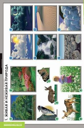Формат 68 х 98 см. Учебный альбом из 13 листов и раздаточный материал.Живая и неживая природа. Виды термометров. Изменение температуры воздуха. Части растения. Плоды и семена. Травянистые растения. Цветение растений. Ярусы леса. Хвойные и лиственные растения. Грибы. Дикие и домашние животные. Питание диких и домашних животных. Насекомые. Перелетные и зимующие птицы.  ,