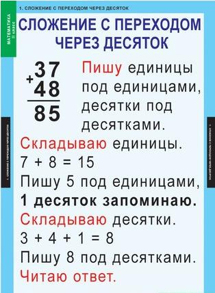 Формат 68х98 см. , Учебный альбом из 8 листов. , Сложение с переходом через десяток. Вычитание с переходом через десяток. Прямые и обратные задачи. Углы. Умножение. Компоненты умножения. Компоненты деления. Цена, количество, стоимость.