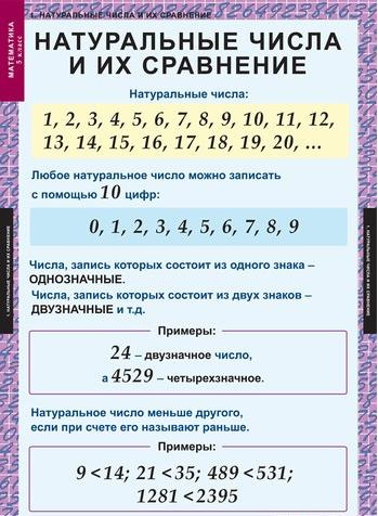 Формат 68х98 см.Учебный альбом из 18 листов.Натуральные числа и их сравнение. Квадраты натуральных чисел. Простые числа. Сложение и вычитание натуральных чисел, свойства сложения. Умножение и деление натуральных чисел, свойства умножения. Обыкновенная дробь. Сравнение обыкновенных дробей. Сложение и вычитание дробей с одинаковыми знаменателями. Десятичная дробь и действия с десятичными дробями. Умножение и деление десятичных дробей. Проценты. Шкалы и координаты. Диаграммы и графики. Решение уравнений. Решение задач на движение. Геометрические фигуры: точка, отрезок, луч, прямая, ломаная. Измерения углов. Транспортир. Инструменты для вычислений и измерений величин на местности. Площадь прямоугольника. Единицы площадей
