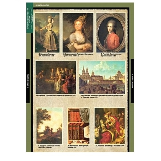 Учебный альбом из 16 листов + 16 карточек.Классицизм. Романтизм. Реализм. Передвижники. Импрессионизм. Модернизм. Мир исскуства. Символизм. Голубая роза. Авангард. Бубновый валет. Соцреализм. Художник и стиль. Художники и дети. + Карточки для контрольных работ.