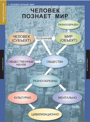 Формат 68х98 см.Учебный альбом из 11 листов.Человек познает Мир. Внутренний мир и социализация Человека. Человек, Природа, Общество. Развитие общества. Рыночная экономика. Политическая система общества. Политическая жизнь общества. Право. Социальная система общества. Взаимодействие людей в обществе. Культура и духовная жизнь.