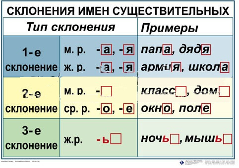 Окончания имен существительных; Склонение личных местоимениий;