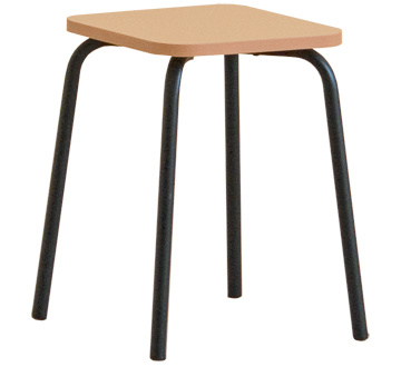 Табурет изготавливается на металлическом каркасе круглого сечения, покрытого стойкой к химическим и механическим воздействиям полимерно-порошковой краской, на свободных концах труб установлены заглушки из ударопрочных полимеров. Сиденье выполнено из ламинированной ДСП 16 мм, углы закруглены, торцы обрамлены кромкой ПВХ 0,4мм.
