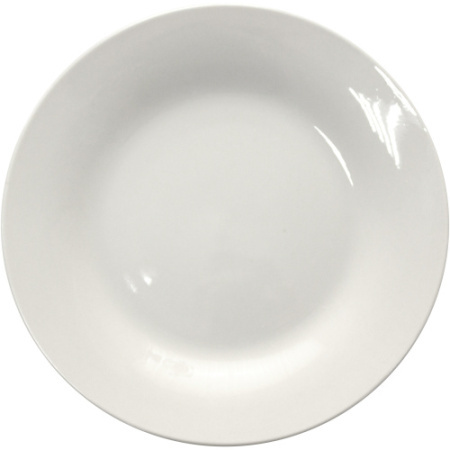 Тарелка выполнена из фарфора и покрыта белой глазурью. Глазурь устойчива к истиранию и предотвращает появление царапин и следов.