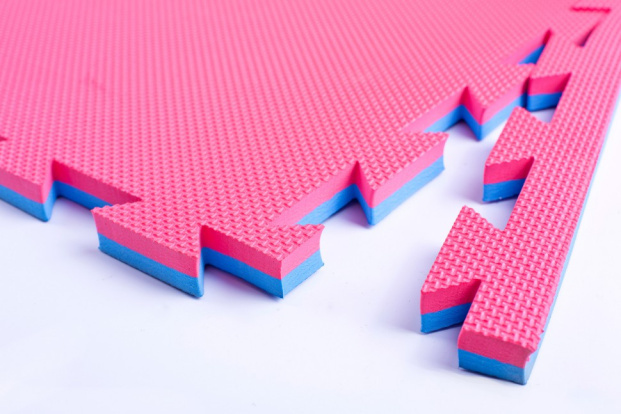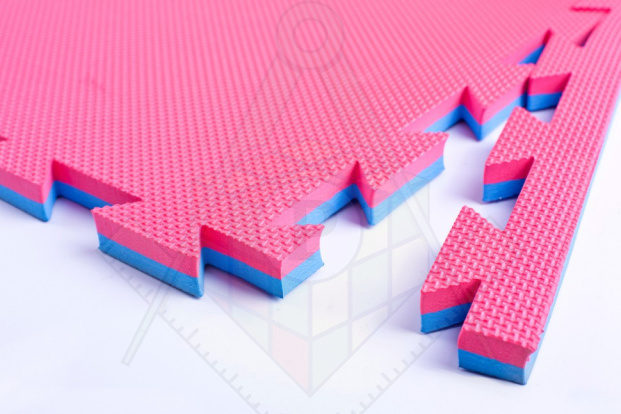 Обе стороны - лицевые, красно-синие цвета, соединение "ласточкин хвост", плотность 90 кг\м3, твердость 35 ед. Шора