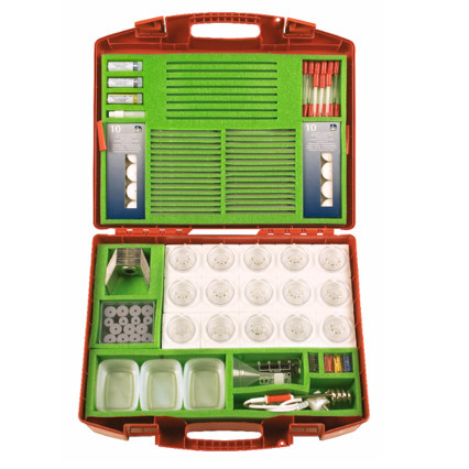 В комплекте (для 15 рабочих групп)* - термометры: неградуированный, со шкалой (от -3 до +103 С) и демонстрационный; калориметры; набор посуды из стекла и пластика с подставками; кипятильник (300 Вт, 220 В), свеча в металлическом держателе; аксессуары.