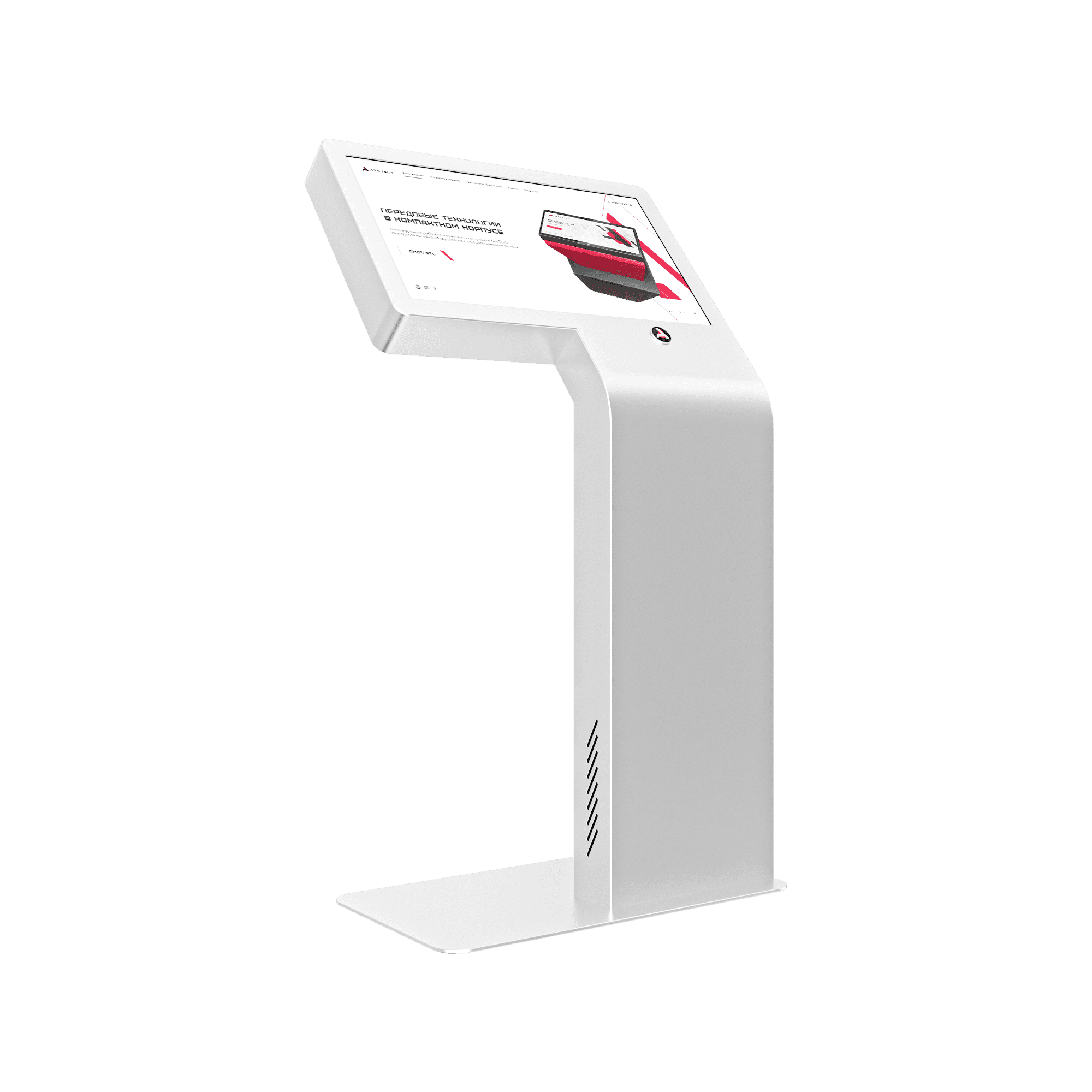 Сенсорный терминал Flex - утонченное и прекрасное решение для мест с ограниченной вместимостью. Благодаря тонкой ножке и компактному размеру диагонали экрана, данная модель идеально впишется в любое пространство. Дизайн прост и лаконичен. Мультитач-система, поддерживающая до 20 одновременных касаний, позволяет моментально найти любую информацию, а также сделать предварительную запись на оказание услуг. Помимо этого, вы можете забрендировать корпус под фирменный стиль вашей компании.