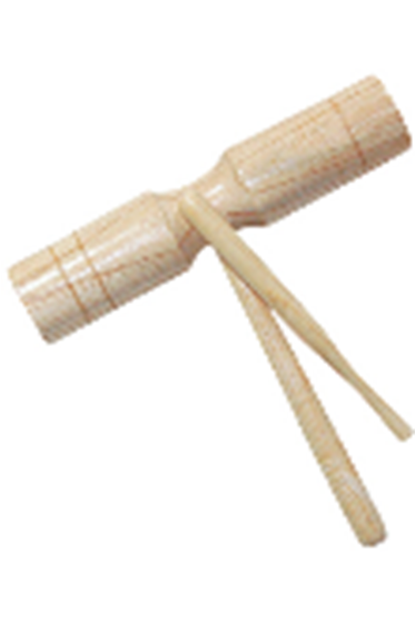 Тон-блок двойной состоит из цилиндра полого с двух сторон, с каждой стороны цилиндра имеются насечки по кругу. Цилиндр закреплен на удобной ручке.