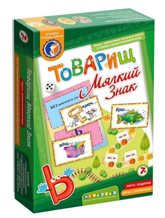 В нашей коробке - две разные игры. Объединяет их общая тема - написание слов с мягким знаком или без него. Лото - это 12 одинаковых карточек для 24-х существительных мужского и женского рода с шипящими на конце. Задача играющих - правильно определить род существительных и положить слово с пропущенным (или без него) мягким знаком. Как всегда, в наших играх существует проверка решений, что очень важно для юных игроков! При правильном выборе места для слова по краю карточки оно складывается при совмещении букв на картинке и на большой карточке. Смотри и запоминай!