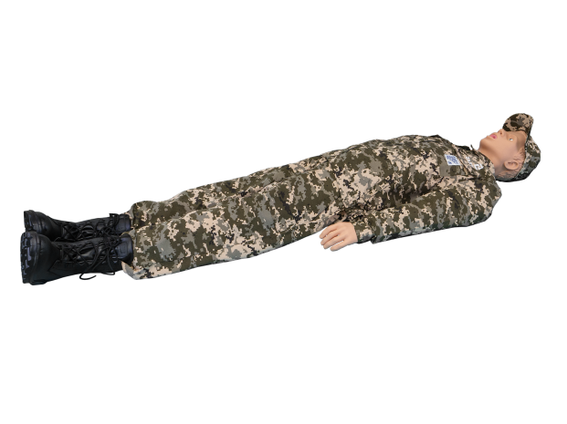 Тренажер-манекен выполнен в виде полноростовой модели тела пострадавшего с полным сохранением пропорций.