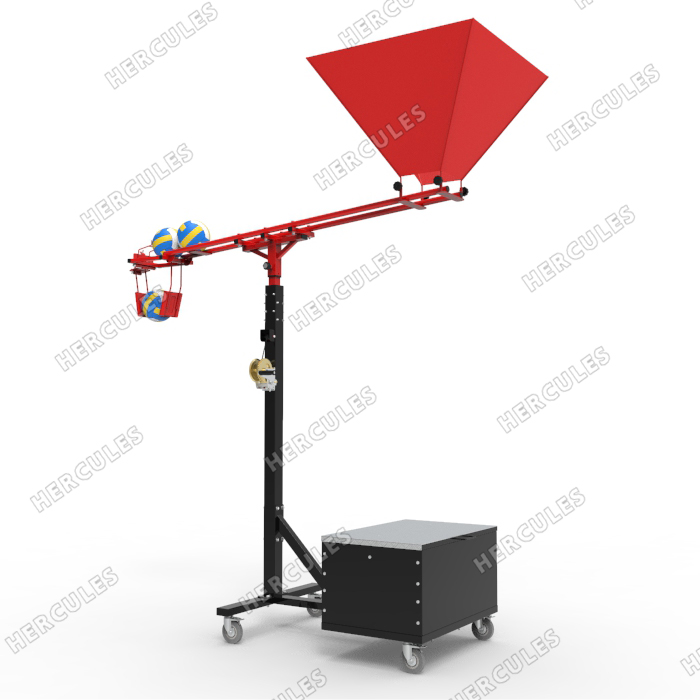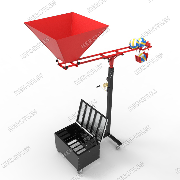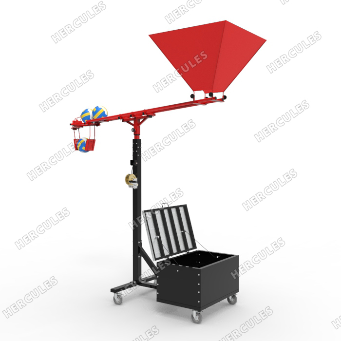Регулируемая высота подачи мячей. Удобная корзина для загрузки мячей без изменения высоты тренажера. Частота подачи мяча зависит от частоты ударов по мячу.