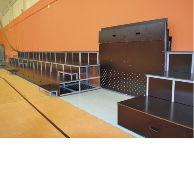 Трибуна складывается и фиксируется у стены, экономя тем самым пространство. Стоимость указана за 1 место. Наименование Величина Количество рядов 3 (три) шаг посадочных мест (расчетный) 480 мм подъем рядов (расчетный) 400 мм ширина секции трибуны 2000 мм Вместимость модуля (расчетная) 12 мест