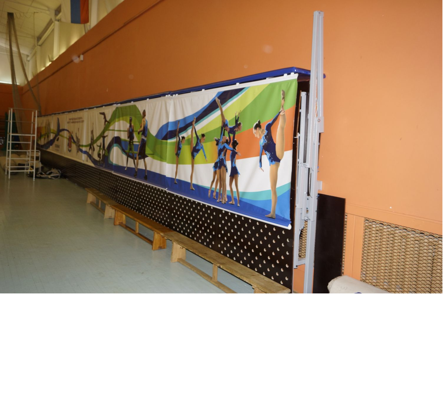 Трибуна складывается и фиксируется у стены,