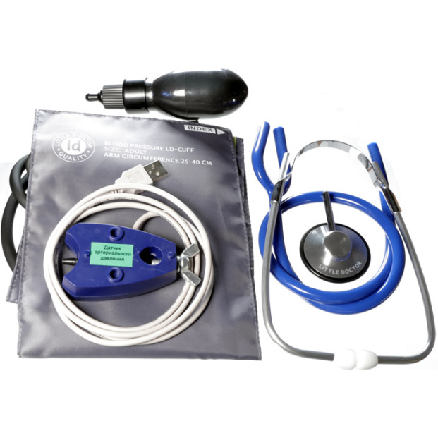 Цифровой USB-датчик для регистрации артериального давления входит в систему учебного оборудования цифровой лаборатории «Радуга» и предназначен для изучения методики и проведения измерений артериального давления человека при изучении биологии. Датчик работает совместно с персональным компьютером.