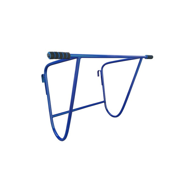 Турник изготовлен из металлических труб (с пластиковыми заглушками), ручки с неопреновыми накладками, с крючками для навешивания на гимнастическую стенку. Окрашен методом порошкового напыления.