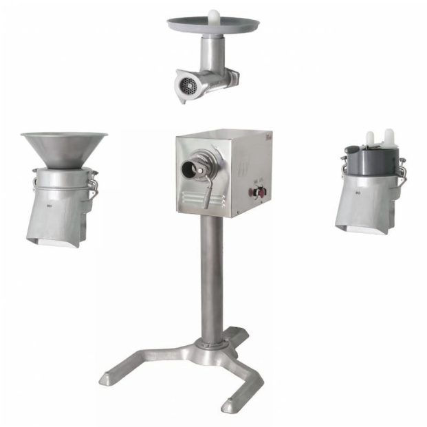 Приводной механизм комплектуется электродвигателем двухскоростным электродвигателем.В комплекте подставка.Производительность мясорубки 75кг/час.