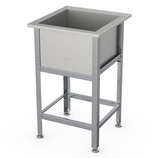 -Сварная ванна выполнена из нержавеющей стали AISI 430 толщиной 0,8 мм, каркас - из оцинкованной стали толщиной 1,2 мм, ножки - из нержавеющей стали, опора ножек - из пластика.