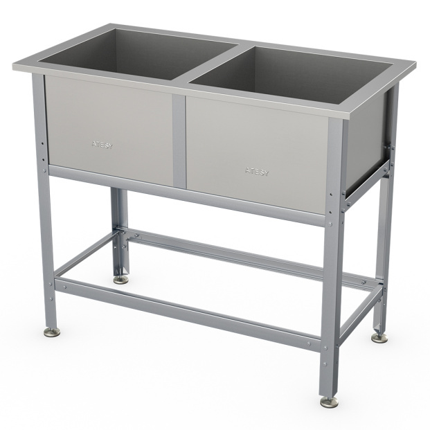 Ванна двухсекционная моечнаяATESYВСМ-С-2предназначена для использования на предприятиях общественного питания для мытья столовой и кухонной посуды, инвентаря, овощей, фруктов, для оттайки замороженных пищевых продуктов и пр.