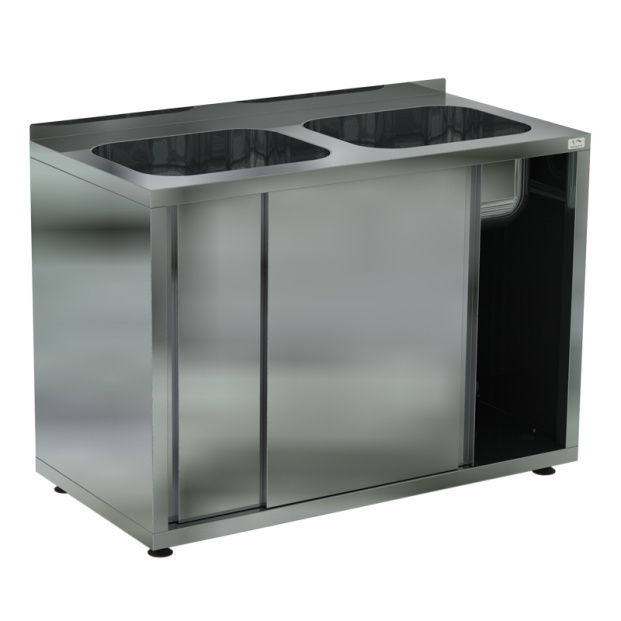 Ванна моечная цельнотянутая закрытая двухсекционная КоборВМЦЗ/2-120/60 используется и как обычные моечные ванны, а благодаря наличию закрытого объема, их можно использовать для хранения посуды, инвентаря, столовых приборов.