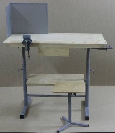 Верстак комбинированный 1000*500*(600-900) мм с выдвижным ящиком для инструмента, в комплекте с табуретом, тисками и защитным экраном.