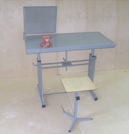Верстак слесарный учебный с металлическим покрытием с тисками, с защитным экраном и табуретом в комплекте