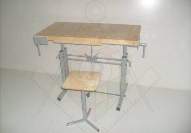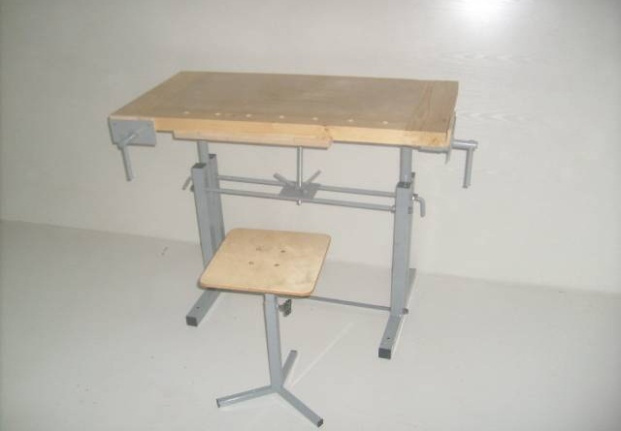 Верстак столярный учебный 1000*500*660-900 сварная конструкция, в комплекте с табуретом и двумя струбцинами.