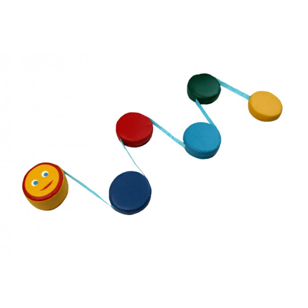 Веселые кочки-это мягкий модуль для шагания, прыжков на физкультурных занятиях и соревнованиях в детских учреждениях.Модуль состоит из мягких разноцветных цилиндров, соединенных атласной лентой, которые можно расположить по прямой линии или змейкой для хотьбы и прыжков по «кочкам», через них. Упражнения с шагайкой развивают двигательную активность, координацию движения и ловкость.