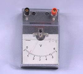 Прибор магнитоэлектрической системы с равномерной шкалой от 0 до 6В.