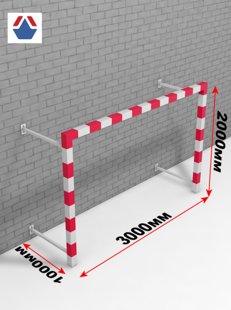 Ворота гандбол - мини-футбол 3х2х1 стальные пристенные складные представляют собой сборно-разборную конструкцию, состоящую из правой, левой, верхней штанг и четырех элементов крепления к стене. Штанги гандбольных ворот стальных выполнены из стальной профильной трубы 80х80х3 мм, крепления к стене - из профильной трубы 30х30х1,5 мм.