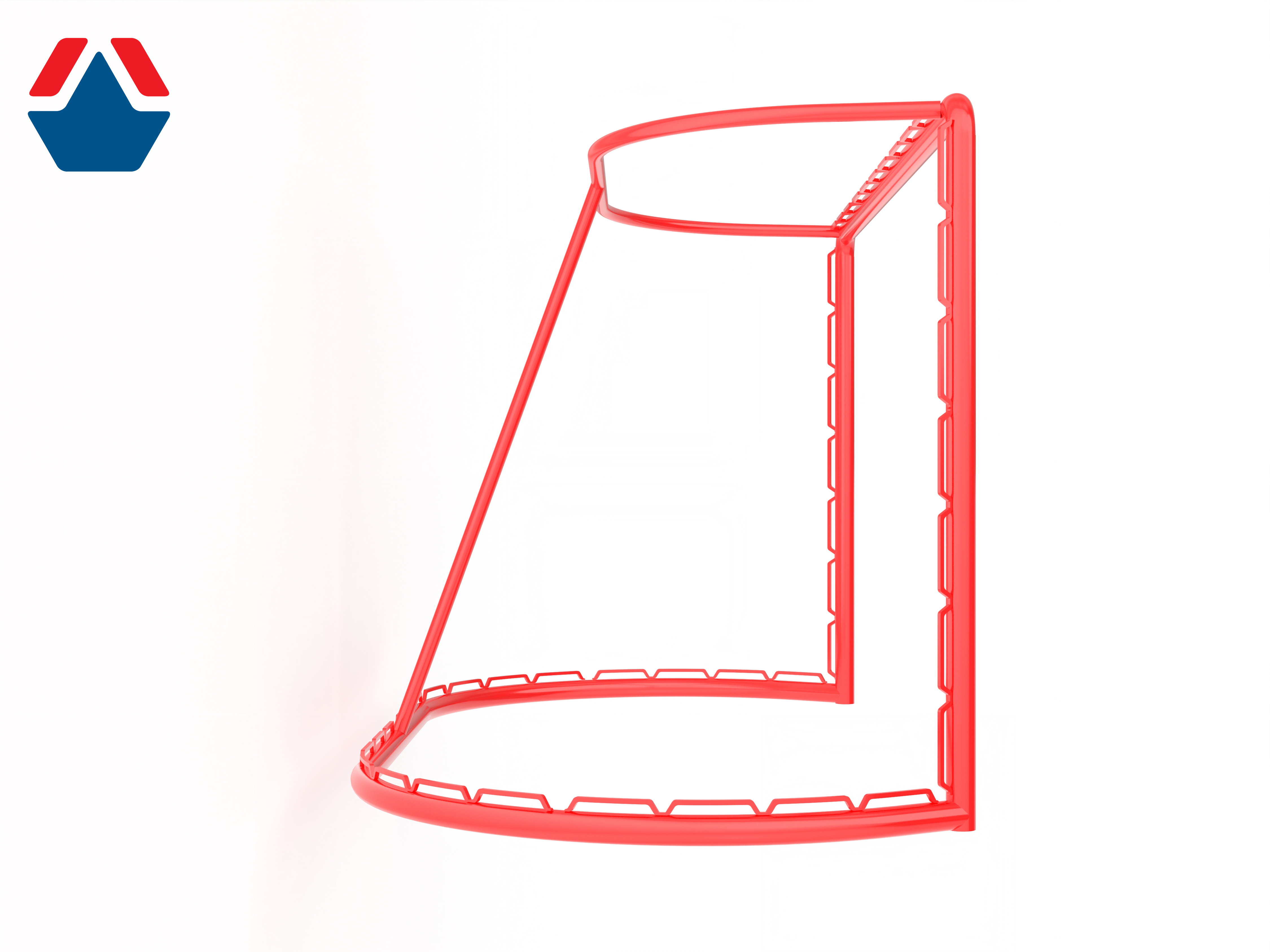 скобы крепления сетки изготовлены из стального листа толщиной 8 мм. специальной П-образной формы, что предотвращает застревание шайбы в местах крепления сетки и травмирование игроков при контакте с выступающими частями опоры ворот;