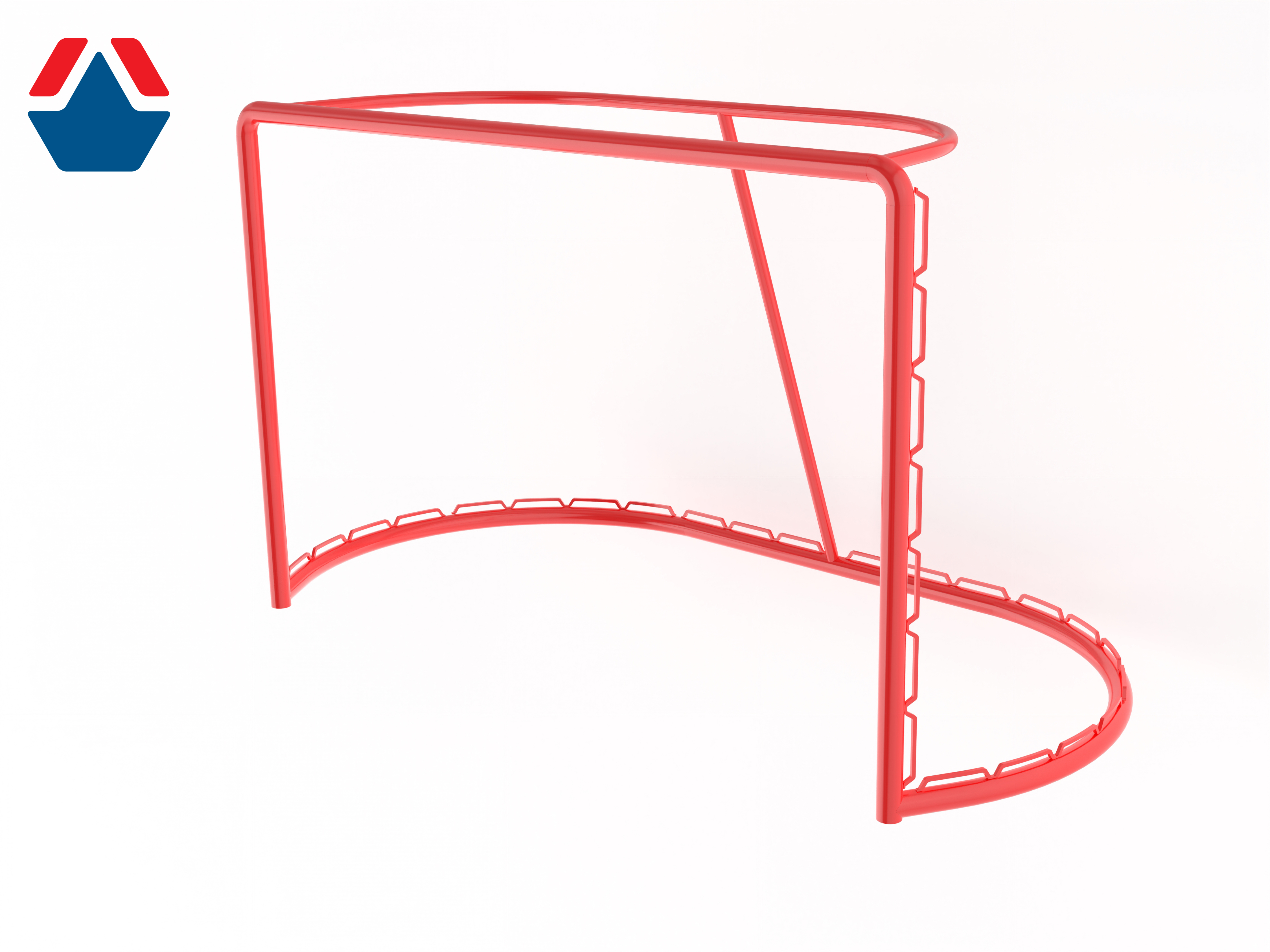 Ворота хоккейные профессиональные состоят из двух вертикальных штанг, соединенных горизонтальной перекладиной, и задней части - опорной рамы закругленной формы, которые изготовлены из стали. Сварные швы данного изделия тщательно обработаны и зачищены. Конструкция ворот хоккейных профессиональных обладает особой прочностью, так как основание ворот выполнено из особо прочной трубы d50х3 мм.