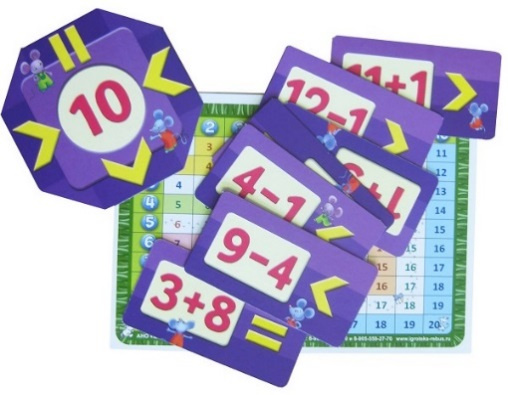В наборе: стартовая карточка,76 примеров на сложение и вычитание, таблица сложения до 20Знакомое всем домино с новыми правилами. Главная задача игроков не просто избавиться от своих карточек, при этом верно (устно!) решить пример на сложение или вычитание чисел в пределах 12. И это ещё не всё. Надо выбрать место для своего ответа, правильно поставив знаки «больше», «меньше» или «равно». Карточки – двухсторонние: на одной стороне – пример на сложение, на обороте – на вычитание. Проверить ответ можно с помощью таблицы, которая находится под рукой, рядом, и решить, наконец, ключевой вопрос математики: «не всё ли равно?»