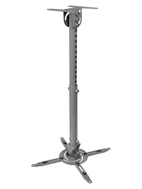 Универсальный потолочный комплект Wize WPB-S, состоящий из крепления, штанги 43-64 см и площадки к потолку для проектора. Обладает функциями наклона +/-15°, поворота +/-15° и вращение на 180°. Выдерживает нагрузку до 12 кг.