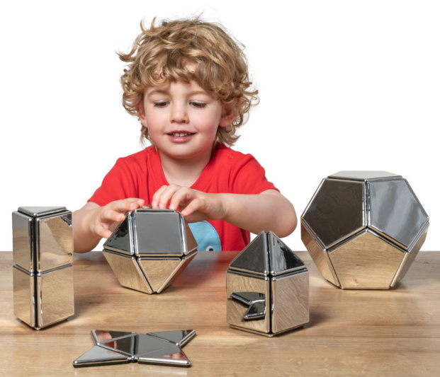 Познакомьте детей с силой отражения и геометрией с помощью нашего гладкого зеркального магнитного полидрона.
