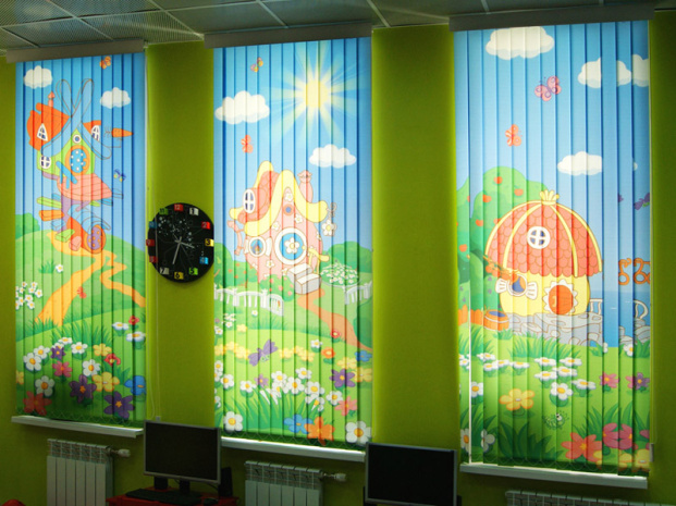 Вертикальные жалюзи — практичное и безопасное решение для оформления окон в детских дошкольных учреждениях.