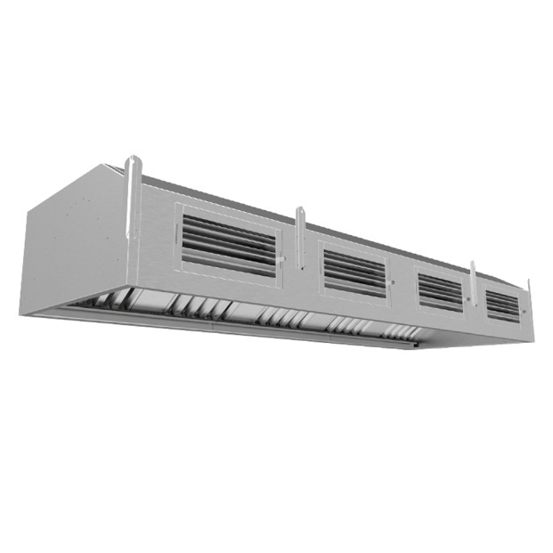 Зонт приточно-вытяжной пристенный КОБОР ЗППВ-120/120 - предназначен для очистки воздуха на кухне от жира, масла, дыма и водяного пара. Зонт должен подключаться к вытяжной вентиляционной системе предприятия, где он установлен. Для ускорения процесса очищения воздуха и увеличения кратности обмена воздуха. Зонт имеет приточные вентиляционные решетки, в которых расположены жалюзи. Положение жалюзи, меняется с помощью рычажков. Изменяя положение жалюзи, меняется направление приточного воздуха – поток можно направлять вниз или прямо. Наличие приточной вентиляции создает нормальный микроклимат в горячих цехах на рабочих местах. Зонт выполнен из нержавеющей стали. Состоит из трех основных частей: корпуса, регулируемых жалюзей и лабиринтных фильтров. Зонт может быть размещен над любым тепловыделяющем оборудованием (плитой, жарочным шкафом, фритюрницей, грилем и т.д.). Зонт крепится непосредственно к стене над оборудованием.