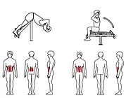 Поясница: поставьте ноги на перекладину для ног, таз на перекладину. Наклоните верхнюю часть тела вперед, чтобы опуститься